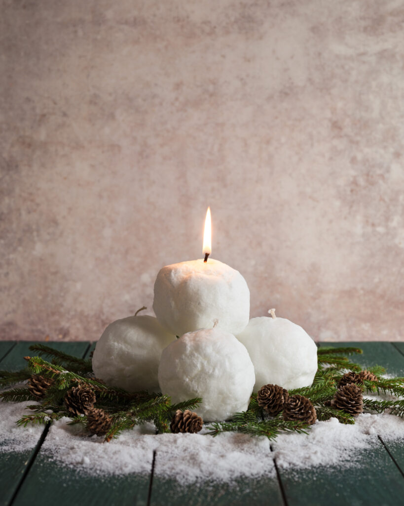 De magiskt fina snöbollsljusen, som för övrigt kramas för hand, var som gjorda för att bygga en liten snöbollslykta.